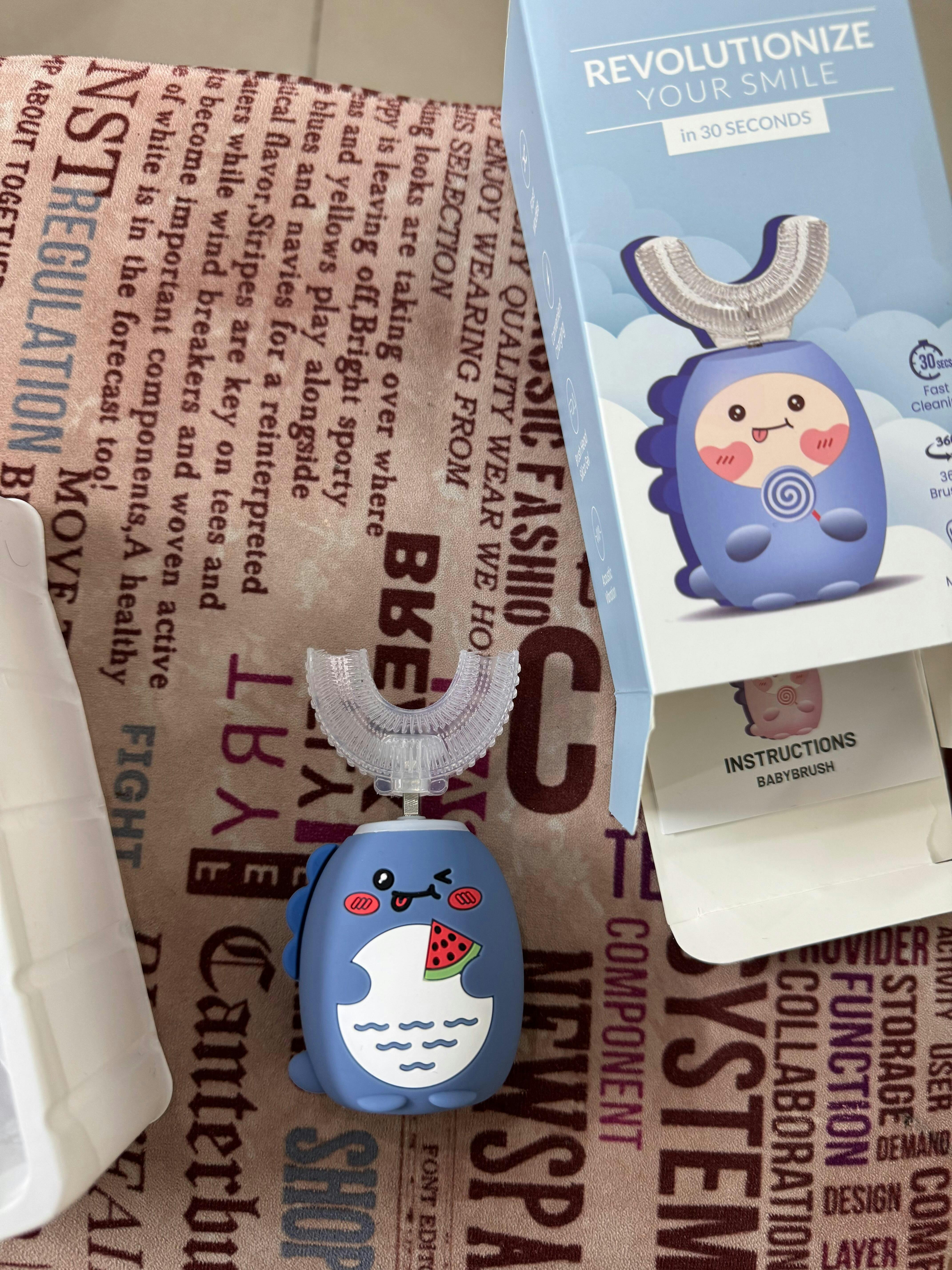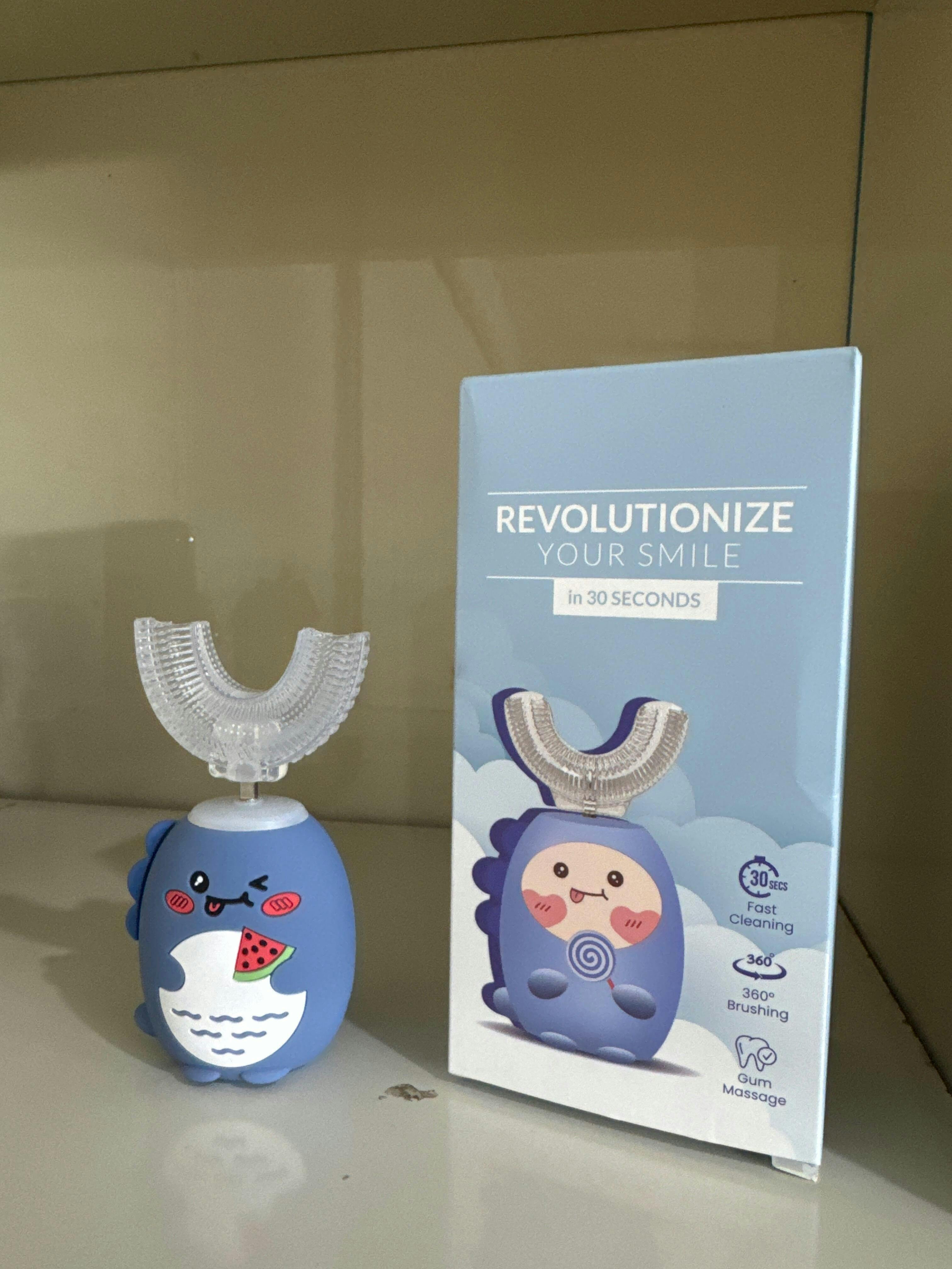 The U-shaped, BPA-free silicone head cleans all sides of your teeth at once using gentle sonic vibrations ✨